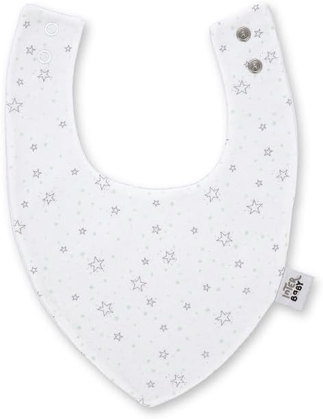 - Un Babitas, pañuelo o babero para bebé en forma de triángulo, con dos broches por detrás para ajustar según la medida del cuello del bebé